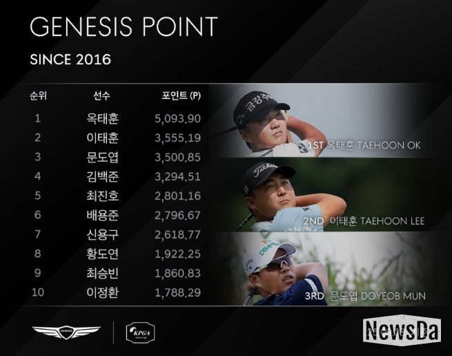 다음 달 23일부터 26일까지는 충남 천안 소재 우정힐스CC에서 KPGA 투어와 DP월드투어 공동주관 대회인 ‘제네시스 챔피언십’이 열린다. ‘제네시스 챔피언십’에는 ‘제네시스 챔피언십’ 직전 대회 종료 기준 제네시스 포인트 상위 36명의 선수가 출전 자격을 얻는다.