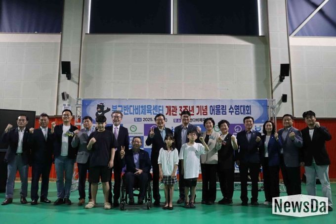 뉴스다 류대현 기자 | 광주북구시설관리공단과 광주북구장애인체육회는 지난 6일 북구반다비체육센터 개관 3주년을 기념하여 장애인과 비장애인이 함께 한 ‘어울림 수영대회’를 개최했다.