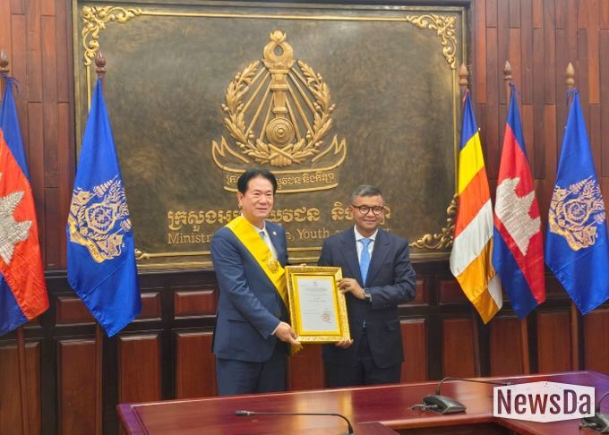뉴스다 류대현 기자 | 이동섭 국기원장이 캄보디아 국왕으로부터 훈장을 수훈했다.