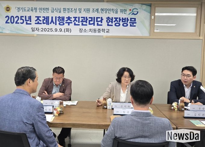 뉴스다 최광묵 기자 | ‘경기도의회 조례시행추진관리단 공동단장’을 맡고있는 교육기획위원회 신미숙 의원(더불어민주당, 화성4)은 9일, 치동중학교를 방문하여 급식실의 작업환경과 조리실무사들의 처우개선에 필요한 사항을 면밀히 살폈다.