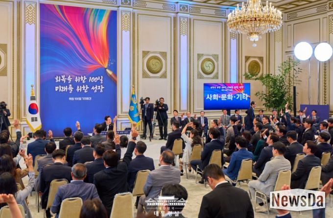 이 대통령은 이날 오전 10시 청와대 영빈관에서 '회복을 위한 100일, 미래를 위한 성장'을 주제로 열린 취임 100일 기자회견에서 "앞으로 남은 4년 9개월은 '도약과 성장의 시간'"이라며 이같이 말했다.
