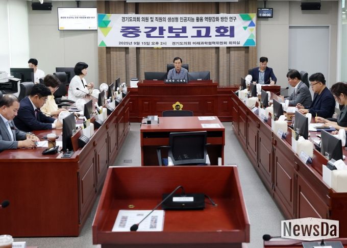 뉴스다 최광묵 기자 | 경기도의회 미래과학협력위원회는 9월 15일, 경기도의회 위원회 회의실에서 『경기도의회 의원 및 직원의 생성형 인공지능 활용 역량강화 방안 연구』에 대한 중간보고회를 개최했다.