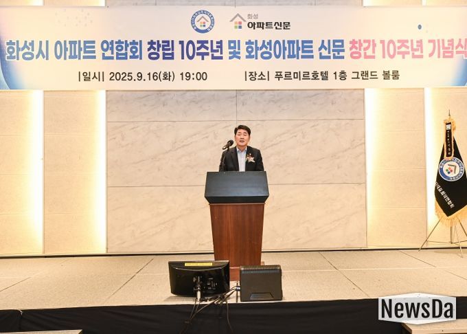 뉴스다 최광묵 기자 | 화성특례시의회는 16일, 푸르미르호텔 그랜드 볼룸홀에서 열린 ‘화성시아파트연합회 창단 10주년 및 화성아파트신문 창간 10주년 기념식’에 참석해 아파트 공동체 문화 발전과 건강한 주거 문화를 응원했다.