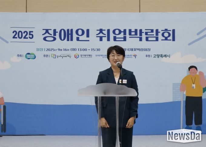 뉴스다 최광묵 기자 | 경기도의회 경제노동위원회 고은정 위원장(더불어민주당, 고양10)은 16일 고양국제꽃박람회장에서 열린 ‘2025 경기도 장애인 취업박람회’ 공동 개막식에 참석해 장애인 일자리 확대의 중요성과 경기 남북부의 균형 있는 접근 필요성을 강조했다.