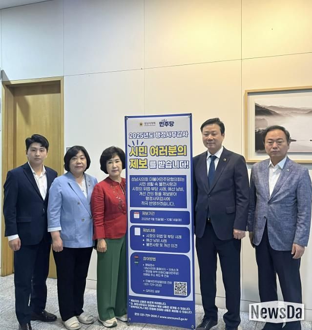 뉴스다 최광묵 기자 | 성남시의회 더불어민주당협의회는 2025년도 행정사무감사를 앞두고 시민 생활 속 불편사항과 시정의 위법·부당 사례, 예산 낭비, 개선 건의사항을 9월 15일부터 10월 14일까지 제보받는다.