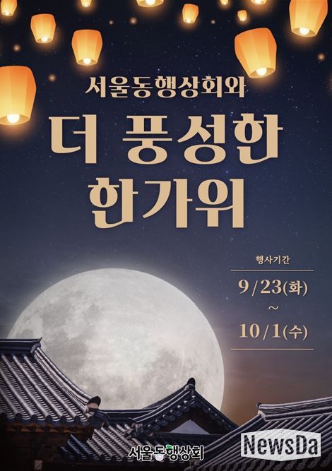 뉴스다 최광묵 기자 | 서울시는 추석을 맞아 시민 장바구니 부담을 줄이고 지역경제와의 상생을 도모하기위해 9월 23일부터 10월 1일까지 서울 동행상회(종로구 율곡로 39, 안국빌딩 1층)에서 ‘서울동행상회와 함께하는 더 풍성한 한가위’ 특별전을 열고, 전국 우수 농·수·특산물과 추석 선물세트를 온·오프라인에서 최대 30% 특가로 선보인다.