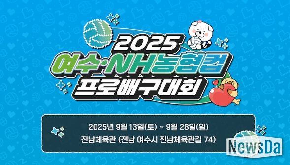 뉴스다 류대현 기자 | 여수시는 오는 9월 21부터 28일까지 진남체육관에서 열리는 ‘2025 여수·NH농협컵 프로배구대회’ 여자부 전 경기의 비지정석을 여수시민에게 무료 개방한다고 밝혔다.