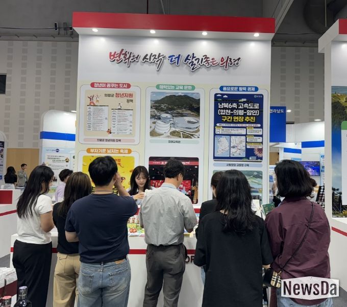 뉴스다 최광묵 기자 | 의령군은 18일부터 20일까지 사흘간 대전컨벤션센터에서 열린 2025년 지역경제 혁신 박람회’에 참가해 의령군 추진 정책 및 특산품 안내, 2025년 의령 리치리치페스티벌 등 홍보를 통해 의령 알리기에 나섰다고 밝혔다.