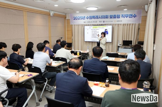 뉴스다 최광묵 기자 | 수원특례시의회는 19일 수원시청 소회의실에서 ‘2025년 수원특례시의회 맞춤형 직무연수’를 실시했다.