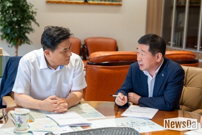 이재영 군수는 22일 한국수자원공사를 직접 방문해 문숙주 수도부문장을 만나 복선화 사업 구간 확장과 피해보상 대책을 공식 요구했다.