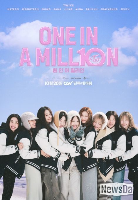 뉴스다 김지연 기자 | 트와이스 데뷔 10주년을 기념하는 히스토리 무비 '원 인 어 밀리언(ONE IN A MILL10N)'이 오는 10월 20일 CGV 개봉을 시작으로 글로벌 개봉을 확정 짓고 메인 포스터를 전격 공개했다.[감독: 와사비마요ㅣ출연: 트와이스ㅣ제작: 미스틱스토리ㅣ배급: CJ CGV, CJ 4DPLEXㅣ장르: 다큐멘터리]