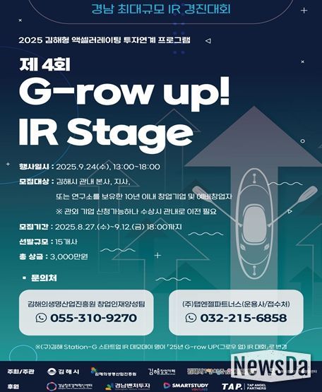 뉴스다 최광묵 기자 | 김해의생명·산업진흥원은 오는 9월 24일 김해롯데호텔앤리조트 수로홀에서‘제4회 G-row UP! IR Stage’를 개최한다고 밝혔다.
