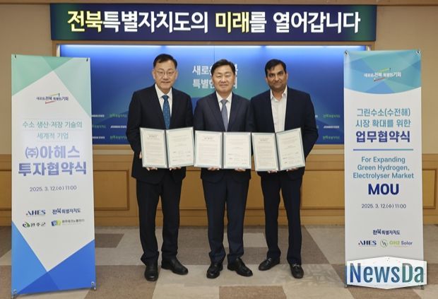 뉴스다 최광묵 기자 | 전북특별자치도는 완주 테크노밸리 2산단 소재 수소전문기업 ㈜아헤스(대표 이중희)가 인도 신재생에너지업체 GH2 Solar Ltd.와 수출 협력을 본격 추진한다고 23일 밝혔다.