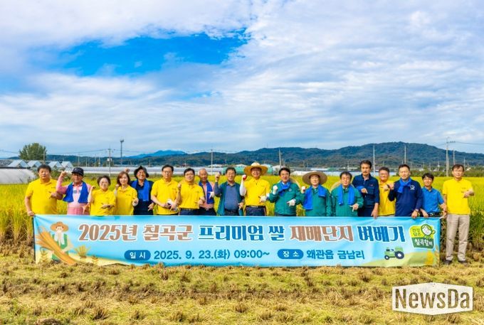 뉴스다 최광묵 기자 | 칠곡군은 23일 왜관읍 금남리에서 ‘칠곡군 프리미엄 쌀 재배단지 벼베기 행사’를 개최했다.