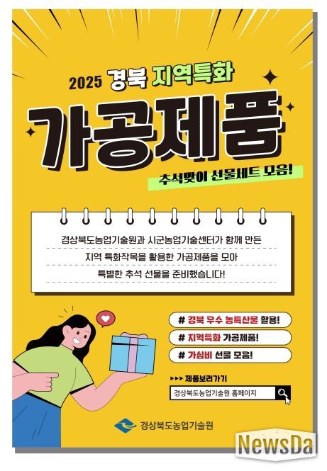 조영숙 경상북도농업기술원장은 “추석을 맞아 경북의 지역 특색이 담긴 가공품으로 소중한 분들께 감사의 마음을 전하길 바란다”며 “앞으로도 특화작목 기반의 가공제품 개발과 산업화를 통해 농업의 부가가치를 높이고, 경북 농식품 산업의 경쟁력을 강화하겠다”고 밝혔다.
