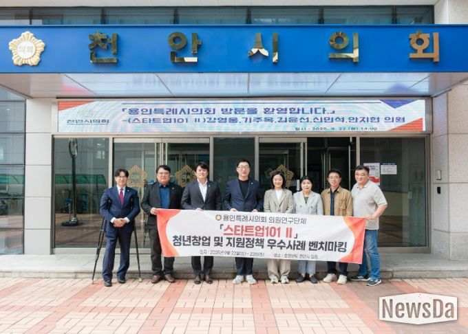 뉴스다 최광묵 기자 | 용인특례시의회 의원연구단체 ‘스타트업101 Ⅱ’는 22일부터 23일까지 이틀간 충청남도 천안시를 방문해 청년창업 및 청년지원 정책 우수사례를 벤치마킹하는 현장 활동을 진행했다.