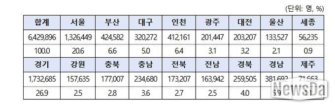 신청은 전용 누리집(상생페이백.kr)에서 11월 말까지 가능하며, 접수 첫 주(9.15.~9.21.)에 약 643만 명(6,429,896명)이 신청했다. 지역별로는 수도권(서울·경기·인천) 신청 비중이 54%(347만 명)로 나타났고, 연령별로는 30대가 26.4%, 40대 25.6%, 50대 18.9% 순으로 비중이 높았다.