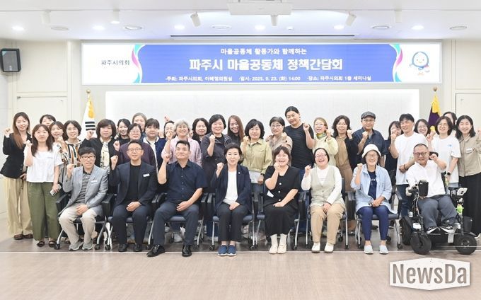 뉴스다 최광묵 기자 | 파주시의회 이혜정 의원은 23일 파주시의회 1층에서 ‘마을공동체 활동가와 함께하는 정책간담회’를 개최했다. 이번 간담회는 마을공동체 활동 활성화와 활동가 권익 향상을 위한 행정적 지원, 정책 개선 및 관련 조례 개정 방안을 논의하고 향후 발전 방향을 모색하기 위해 마련됐다.