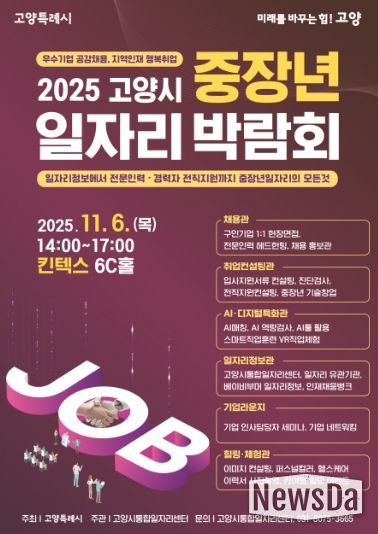 뉴스다 최광묵 기자 | 고양특례시는 오는 11월 6일 킨텍스 제2전시장 6C홀에서 열리는‘2025 고양시 중장년 일자리박람회’에 참여할 구인기업을 모집한다고 밝혔다.