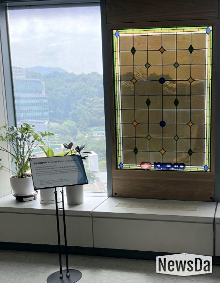 이번에 설치한 패널은 15×15cm2 크기의 페로브스카이트 모듈 54장을 병렬로 배열했으며, 모듈 효율은 11~13%, 투과율은 30% 이상으로 창을 통해 외부 전경을 볼 수 있는 등 기술 성능을 높였다. 또한 KEPCO 로고를 활용한 스테인드글라스 디자인을 패널 후면에 적용해 건축물 미관을 높이며 디자인 완성도를 확보했다.