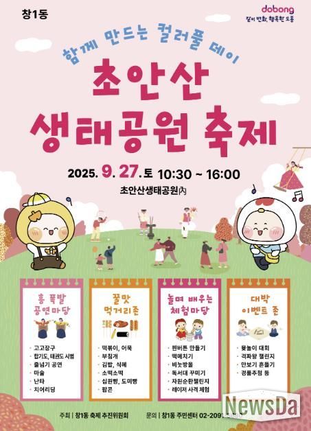 뉴스다 최광묵 기자 | 서울 도봉구 창1동이 9월 27일 초안산 생태공원에서 '함께 만드는 컬러풀 데이 초안산 생태공원 축제'를 개최한다.