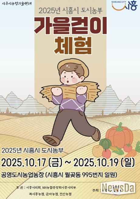 뉴스다 최광묵 기자 | 시흥시는 오는 10월 17일부터 19일까지 3일간 월곶동 공영도시농업농장(월곶동 995번지)에서 도시농업을 만끽할 수 있는 ‘2025년 도시농부 가을걷이 체험행사’를 개최한다.