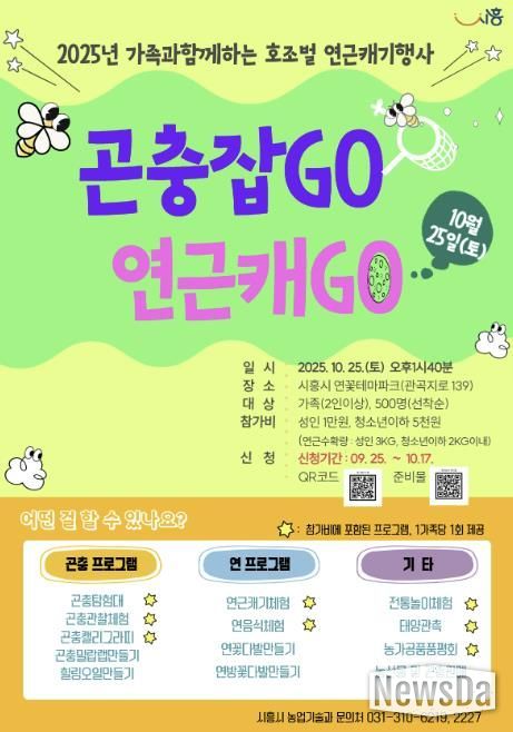 뉴스다 최광묵 기자 | 시흥시는 오는 10월 25일 오후 1시 40분부터 5시까지 연꽃테마파크에서 가족 단위 참여자를 위한 특별 체험행사 ‘곤충 잡고(GO), 연근 캐고(GO)’를 진행한다. 이번 행사는 지역 농가와 협력해 다양한 체험 프로그램을 동시에 제공한다.