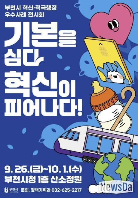 뉴스다 최광묵 기자 | 부천시는 9월 26일부터 10월 1일까지 6일간 부천시청 1층 산소정원에서 ‘혁신‧적극행정 우수사례 전시회’를 연다. 이번 전시회는 ‘기본을 심다, 혁신이 피어나다!’를 주제로, 부천시가 시민의 행복과 소통을 중심으로 실천하는 혁신행정을 소개하기 위해 마련됐다.