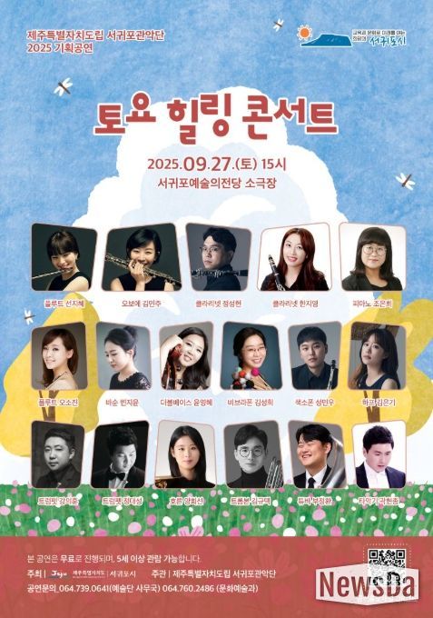 뉴스다 최광묵 기자 | 서귀포시는 9월 27일 15시 서귀포예술의전당 소극장에서 서귀포관악단의 기획공연 '토요힐링콘서트'를 진행한다.