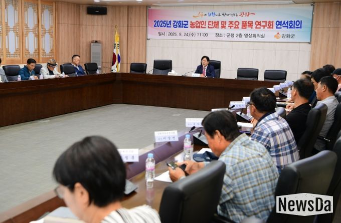 뉴스다 최광묵 기자 | 강화군은 지난 24일 관내 농업인 단체장과 주요 품목 연구회 대표들과 함께 연석회의를 열고, 가을철 수확기를 맞은 농산물의 고품질 유지와 농업 발전 방안을 모색했다.