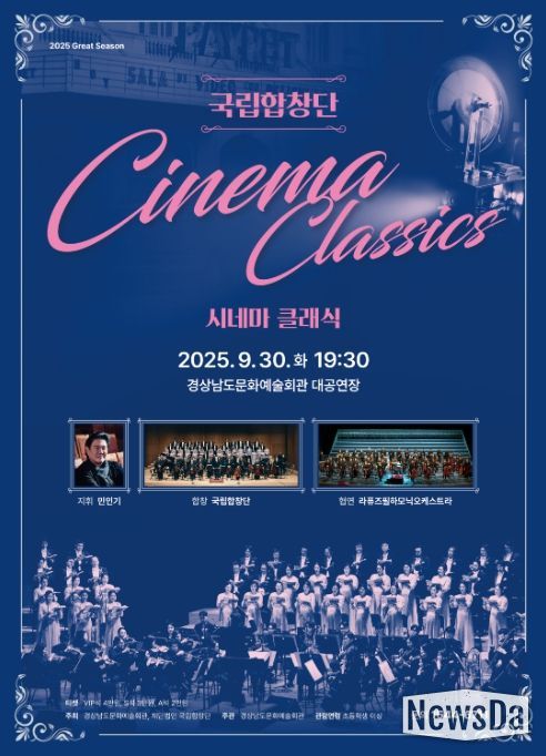 뉴스다 최광묵 기자 | 경남문화예술회관은 30일 오후 7시 30분 대공연장에서 ‘국립합창단 시네마 클래식’을 개최한다고 밝혔다.