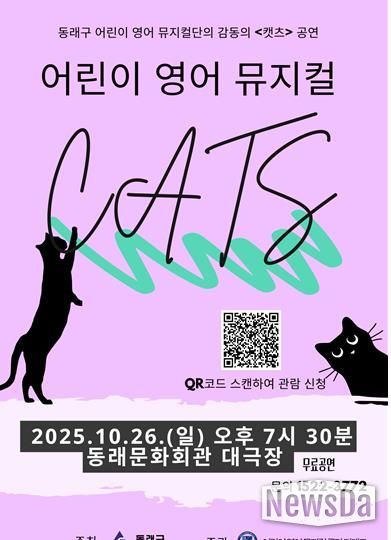 뉴스다 최광묵 기자 | 부산 동래구는 ‘어린이 영어 뮤지컬단’이 8개월간의 연습을 마치고 오는 10월 26일 오후 7시 30분, 동래문화회관 대극장에서 뮤지컬 캣츠(CATS) 공연을 선보인다고 밝혔다.