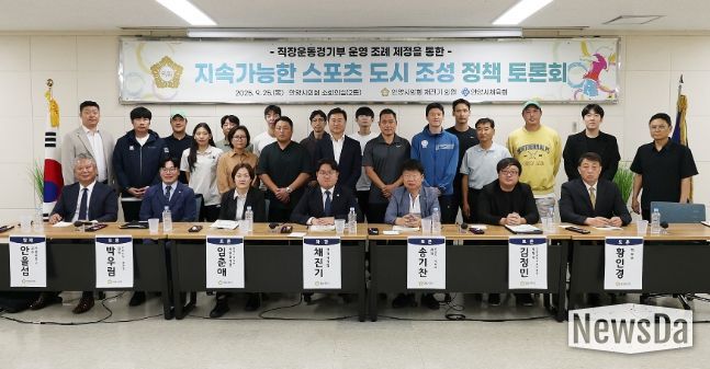 뉴스다 최광묵 기자 | 안양시의회 채진기 의원이 주최한 ‘직장 운동경기부 운영조례 제정을 통한 지속가능한 스포츠 도시 조성 정책 토론회’가 지난 25일 안양시의회 소회의실에서 선수, 지도자, 학부모, 체육계 전문가 및 시민 40여 명이 참석한 가운데 성황리에 개최됐다.