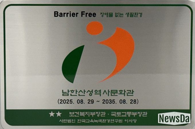 뉴스다 최광묵 기자 | 경기문화재단 남한산성역사문화관은 문화시설로서 ‘장애물 없는 생활환경(배리어 프리, Barrier-Free)‘ 본 인증(우수등급)을 획득했다고 밝혔다. 이번 인증은 남한산성역사문화관이 모든 이용자에게 차별 없는 접근성을 보장하고, 사회적 약자를 포함한 누구나 편리하고 안전하게 이용할 수 있는 공간을 만들기 위해 지속적으로 노력해 온 결실이다.