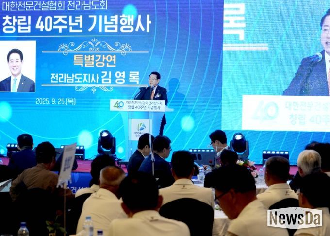 뉴스다 최광묵 기자 | 전라남도는 25일 보성군 보성다비치콘도에서 열린 전문건설협회 전남도회 40주년 기념행사에서 대한민국 성장의 새로운 중심축이 되기 위한 비전을제시했다.