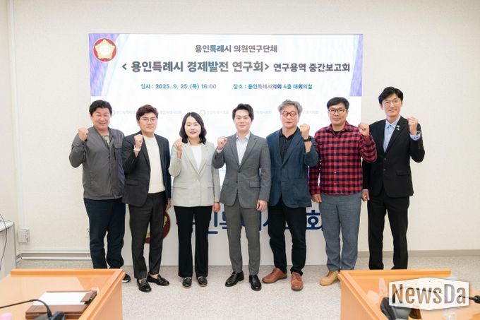뉴스다 최광묵 기자 | 용인특례시의회 의원연구단체 '용인특례시 경제발전 연구회'(대표 박병민)가 25일 의회 대회의실에서 연구용역 중간보고회를 열고, 연구 진행 상황을 점검하며 향후 추진 방향을 논의했다.