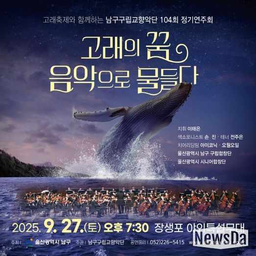 뉴스다 최광묵 기자 | 울산 남구는 27일 오후 7시 30분, 장생포 야외 특설무대에서 ‘남구구립교향악단 제104회 정기연주회’를 개최한다.