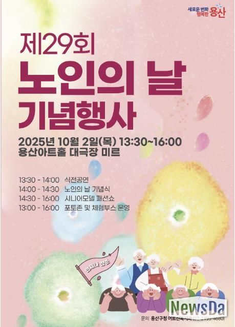 뉴스다 최광묵 기자 | 서울 용산구는 ‘제29회 노인의 날’을 맞아 오는 10월 2일 오후 2시 용산아트홀 대극장 미르(녹사평대로 150)에서 노인의 날 기념식 및 시니어모델 패션쇼를 개최한다.