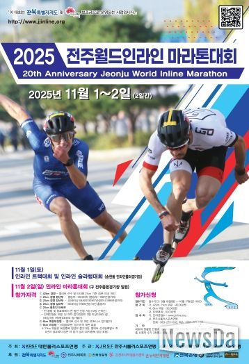 뉴스다 류대현 기자 | 세계 최정상급 인라인 선수와 동호인이 참가하는 스무 번째 전주월드인라인마라톤 대회가 열린다.