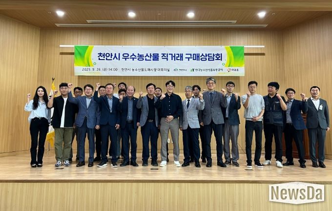 뉴스다 최광묵 기자 | 천안시와 한국농수산식품유통공사(aT)가 26일 천안시 농수산물도매시장 대회의실에서 ‘천안시 우수농산물 직거래 구매상담회’를 개최했다.