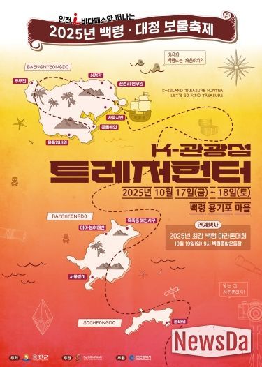 뉴스다 최광묵 기자 | 옹진군은 오는 10월 17일부터 18일까지 2틀간, ‘2025년 백령대청 보물축제’를 백령면·대청면 일대에서 개최한다고 밝혔다.