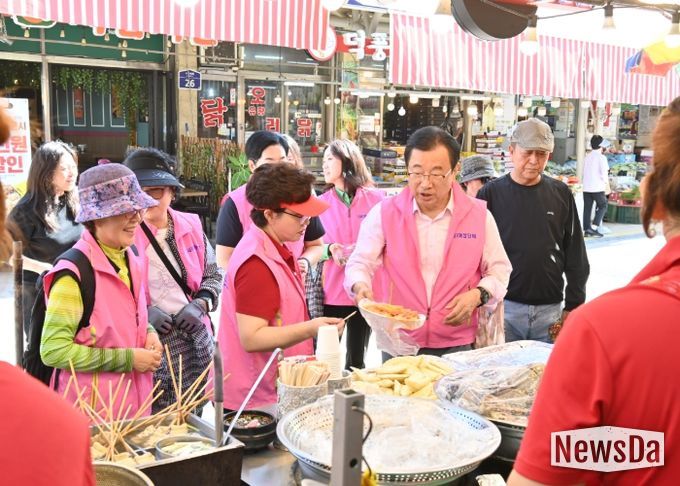 계산대 앞에서는 온누리상품권과 지역화폐(하머니)를 활용해 직접 결제를 하며 전통시장 이용을 몸소 실천해 눈길을 끌었다.