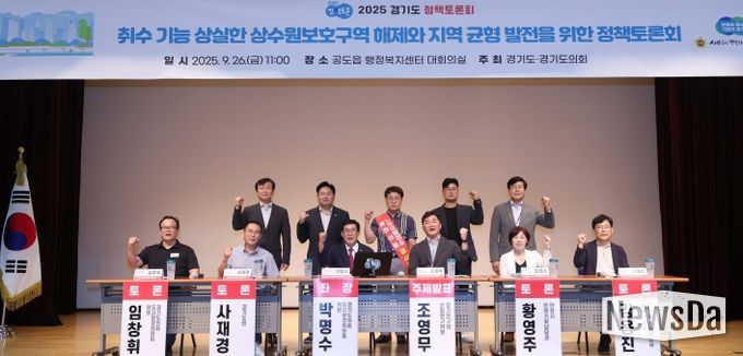 뉴스다 최광묵 기자 | 경기도의회 도시환경위원회 박명수 의원(국민의힘, 안성2)이 좌장을 맡은 '취수 기능을 상실한 상수원보호구역 해제와 지역 균형 발전을 위한 정책토론회'가 26일 오전 11시, 공도읍 행정복지센터 대회의실에서 열렸다. 이번 토론회는 ‘2025 정책토론 대축제’의 일환으로 박명수 의원이 기획하고 경기도의회와 경기도가 공동으로 주최했다.