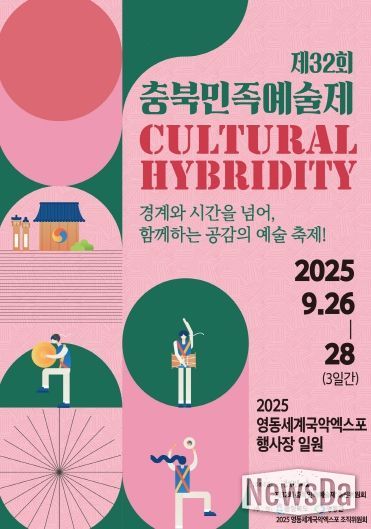 뉴스다 최광묵 기자 | 영동세계국악엑스포조직위는 26일부터 28일까지 영동세계국악엑스포 행사장 일원에서 ‘제32회 충북민족예술제’가 열린다고 밝혔다. 충북민예총이 주최하는 충북민족예술제는 ‘문화 혼종성(Cultural Hyridity)’을 주제로 공연·전시·체험이 한데 어우러지는 3일간의 종합예술 축제의 장으로 마련된다.