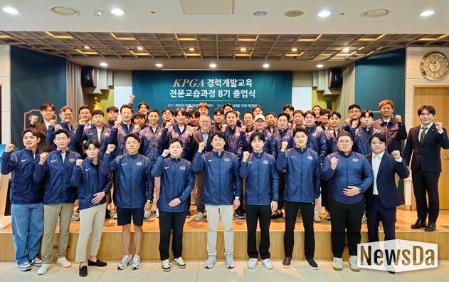 뉴스다 류대현 기자 | (사)한국프로골프협회(회장 김원섭, 이하 KPGA)의 KPGA 경력개발교육 전문교습과정 8기 졸업식이 26일 경기 성남 소재 KPGA 빌딩 10층에서 개최됐다.