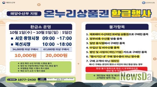 시 관계자는 “시민분들께 안전하고 신뢰할 수 있는 수산물을 제공하기 위해 지속적으로 노력하고 있다”며 “추석 명절을 맞아 이번 환급행사를 통해 많은 분들이 청정바다 통영의 수산물을 보다 합리적인 가격에 즐기시길 바란다”고 전했다.