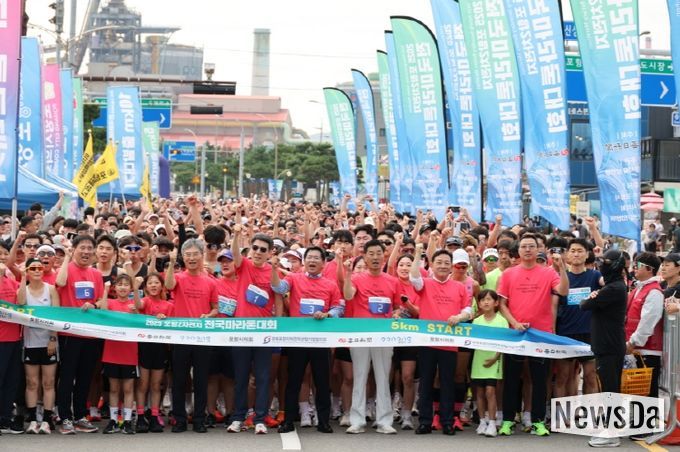뉴스다 류대현 기자 | 포항시는 28일 송도해수욕장에서 ‘2025 포항 이차전지 전국 마라톤대회’를 개최해 이차전지 특화도시 위상을 전국에 각인시켰다. 전국 8,500여 명의 마라토너들이 참여하며 성황리에 행사를 마쳤다.