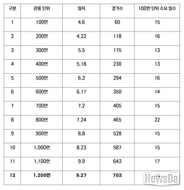 뉴스다 류대현 기자 | 2025 신한 SOL뱅크 KBO 리그가 1,200만 관중을 달성했다.