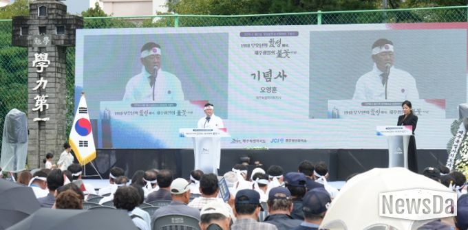 뉴스다 최광묵 기자 | 제주특별자치도는 28일 오전 10시 서귀포시 중문중학교 운동장에서 무오법정사 항일항쟁 107주기 기념식을 거행했다.