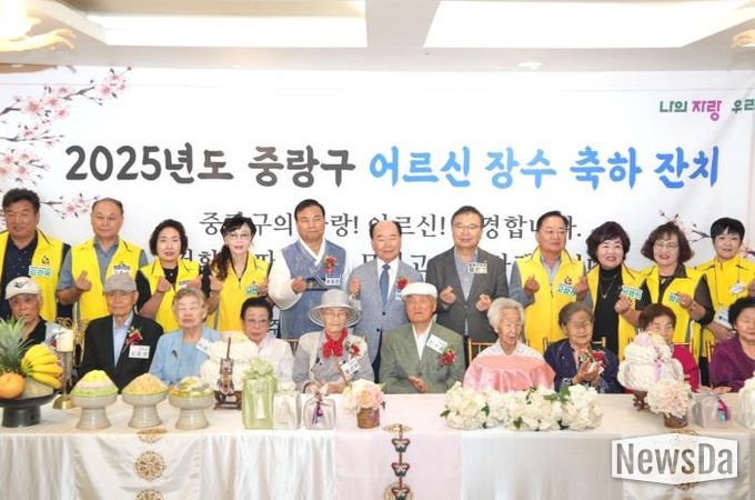 뉴스다 최광묵 기자 | 중랑구는 지난 9월 26일, 중랑구 효사랑봉사회 주관으로 ‘2025년 중랑구 어르신 장수 축하 잔치’를 열고 동별 최고령 어르신과 가족들을 초청해 감사의 마음을 전하는 뜻깊은 시간을 가졌다.